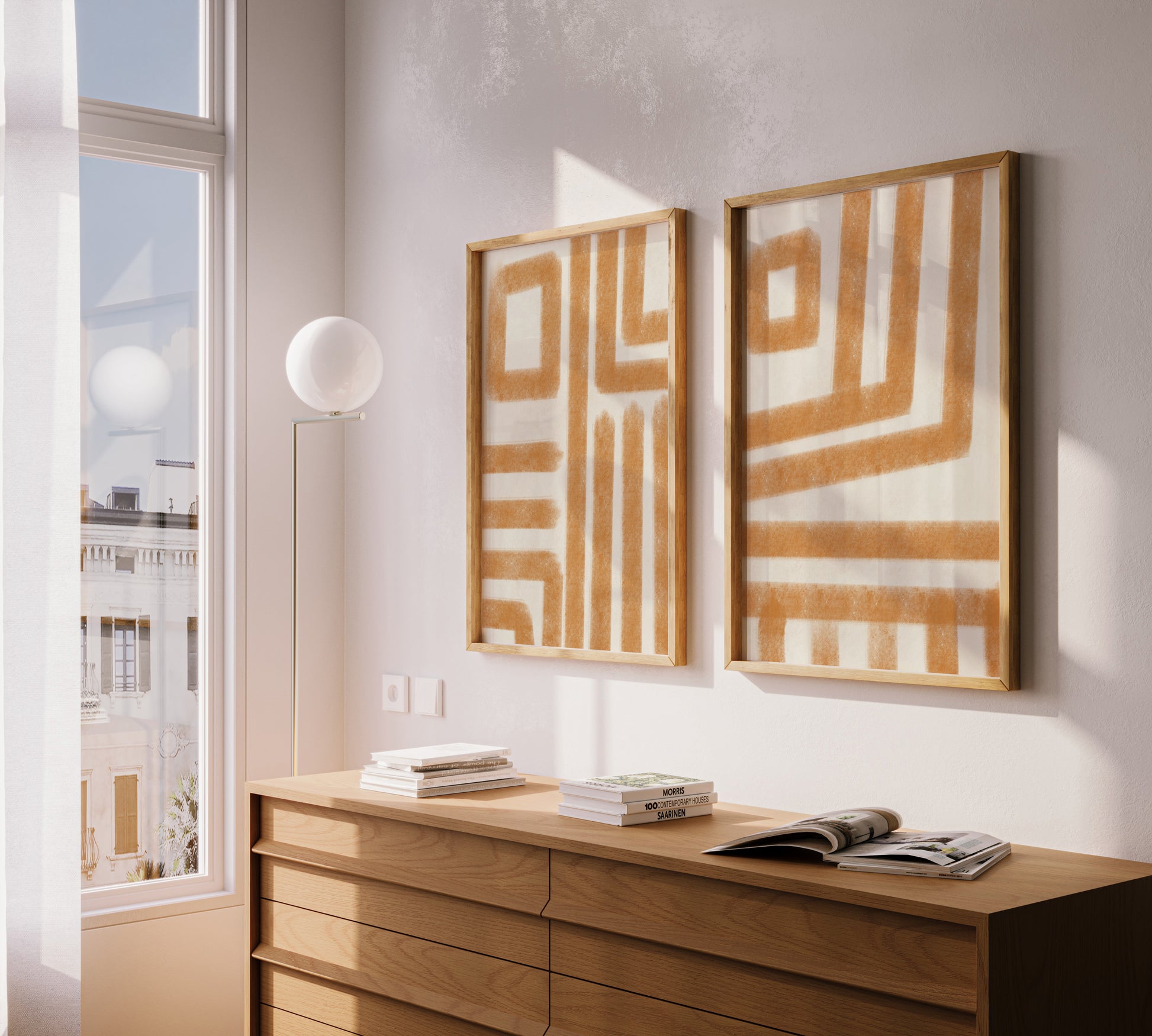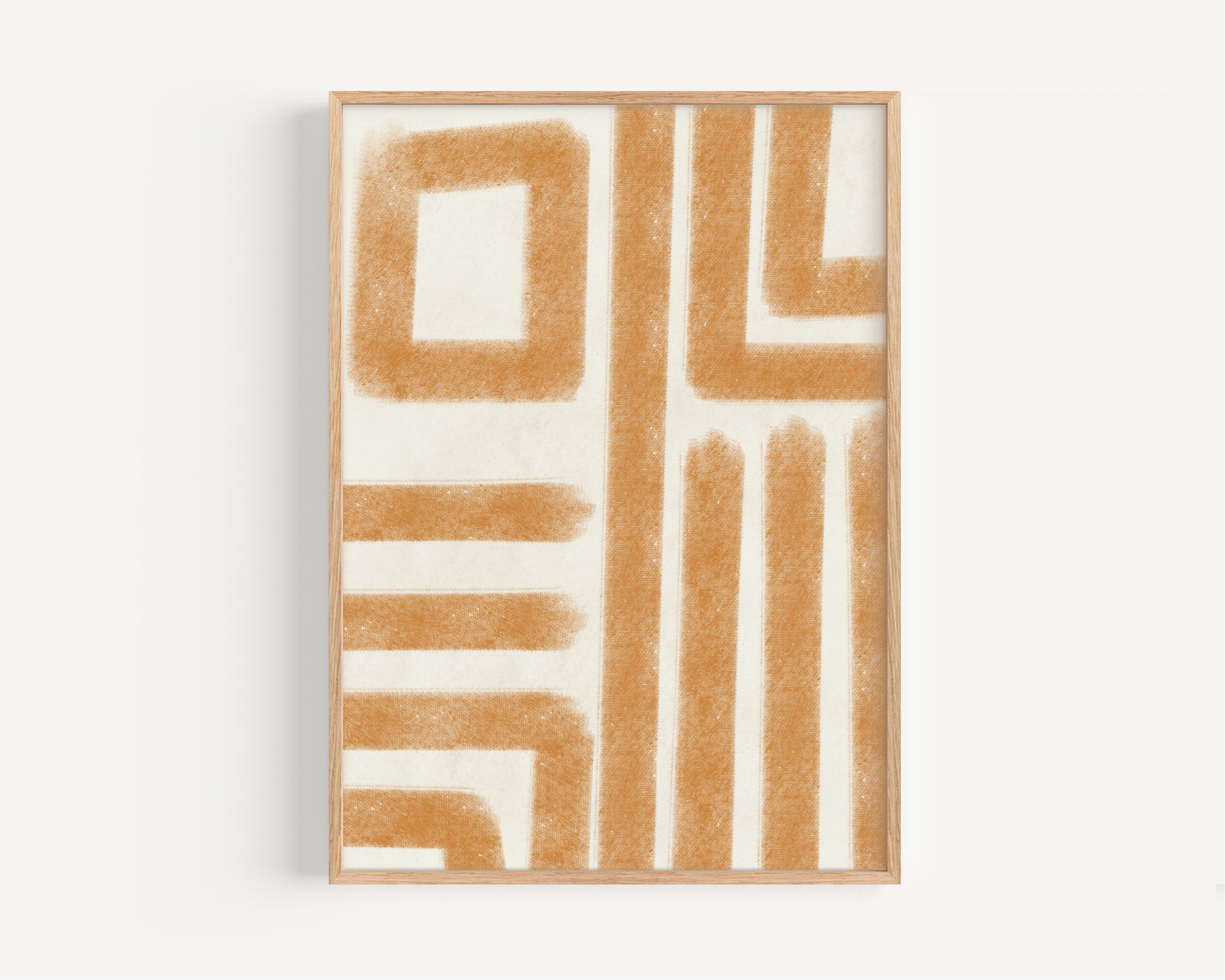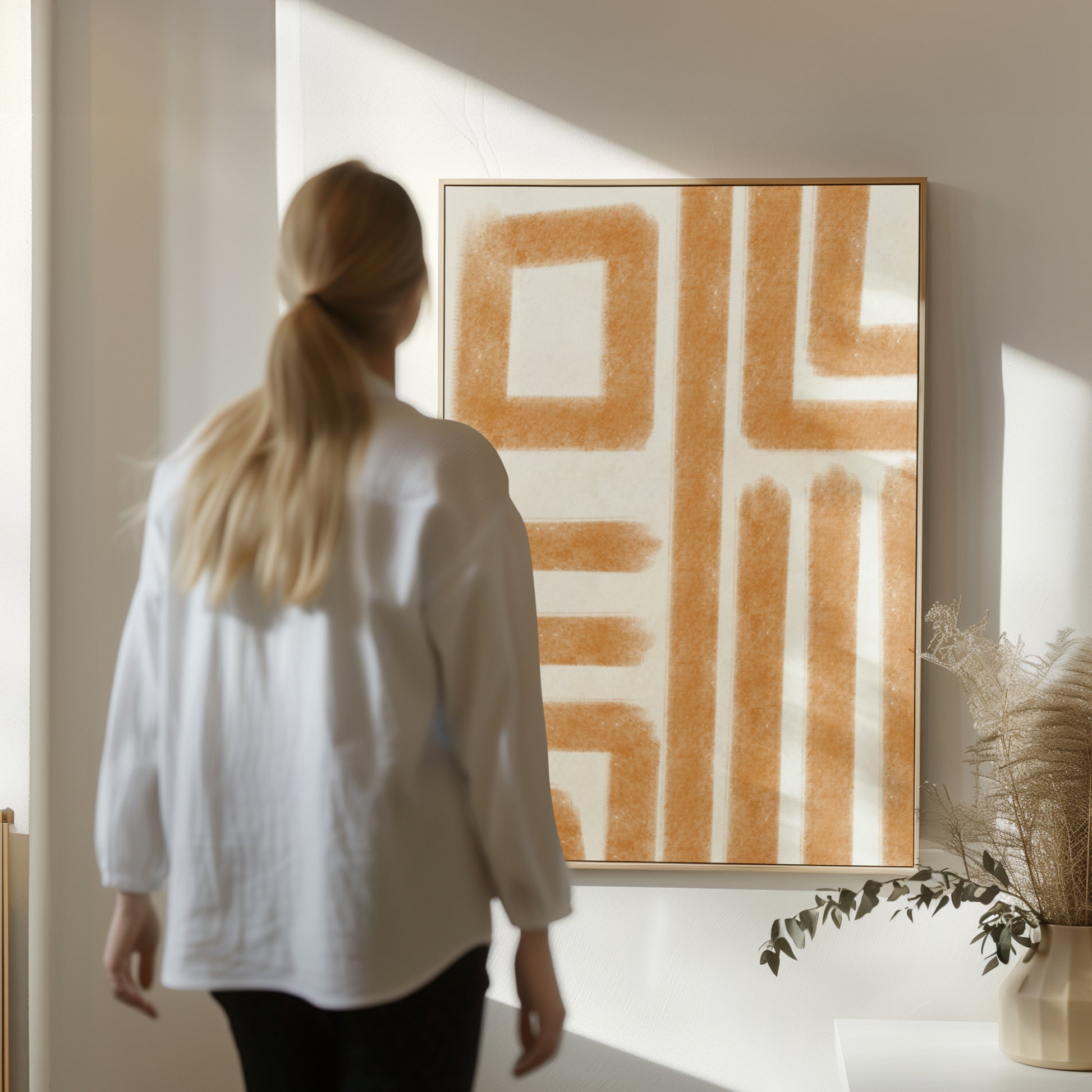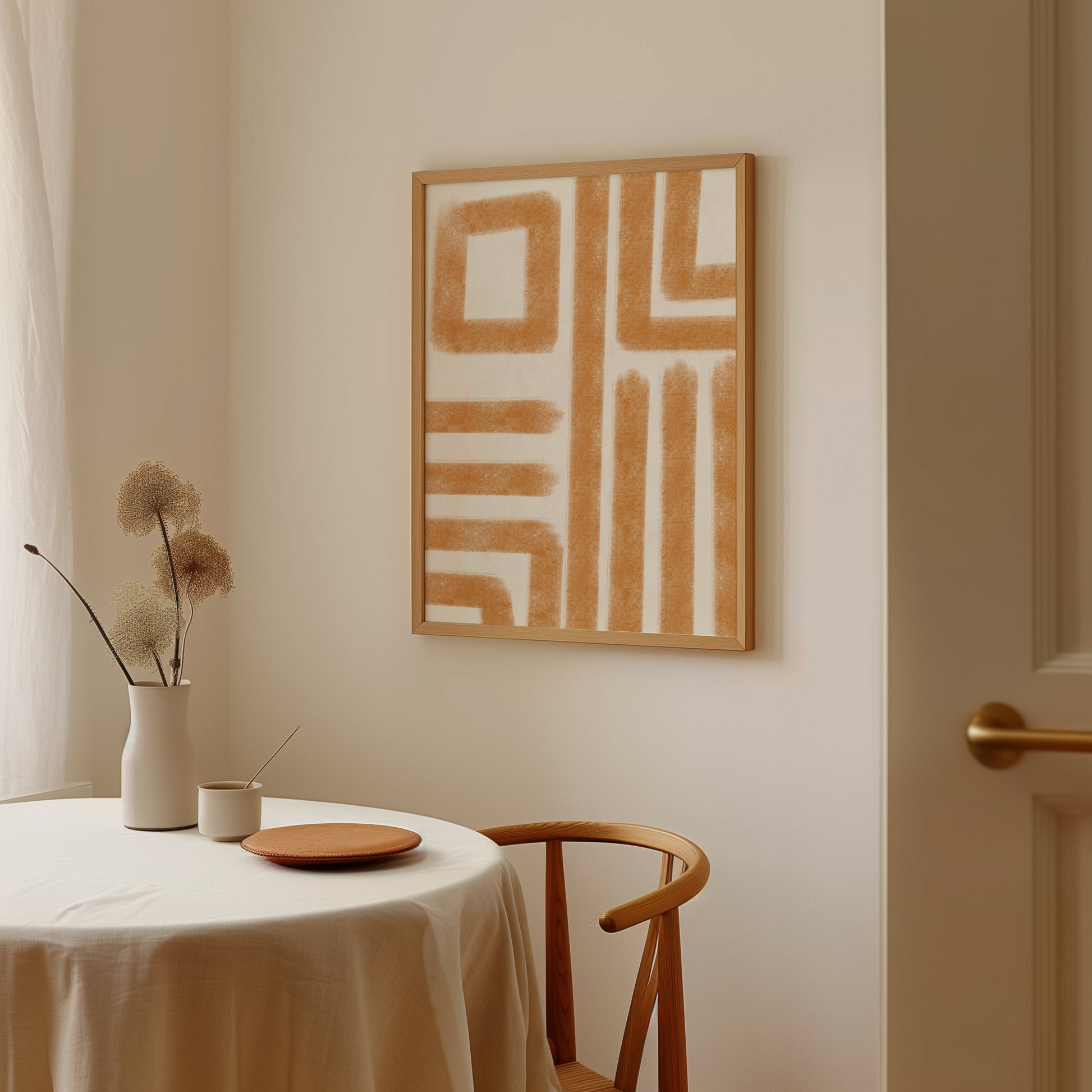 This orange geometric abstract print poster brings a modern touch to any space. Perfect for those who appreciate unique and artistic designs, it can be used to elevate the decor in a living room, bedroom, or office. Ideal for art lovers and individuals looking to add a pop of color to their walls.